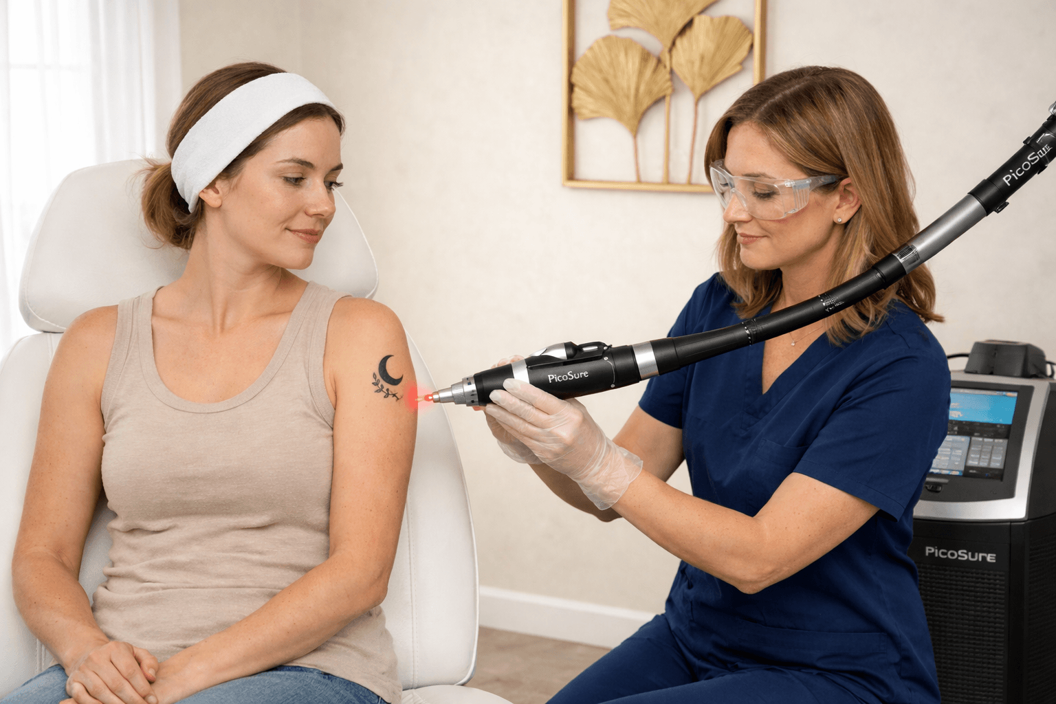 PicoSure® uses picosecond laser technology to shatter tattoo ink into tiny particles. These particles are then naturally cleared by the body over time. Unlike traditional lasers, it relies on pressure rather than heat, reducing the risk of damage to surrounding skin. Treatments are spaced to allow proper healing and ink removal. Results develop gradually across multiple sessions.