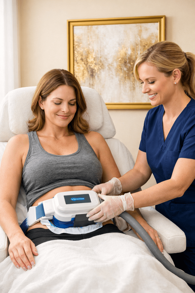 Full CoolSculpting results appear by 12 weeks, with up to 20–25% fat reduction in each treated area. Many clients return for additional sessions to enhance or treat new zones.